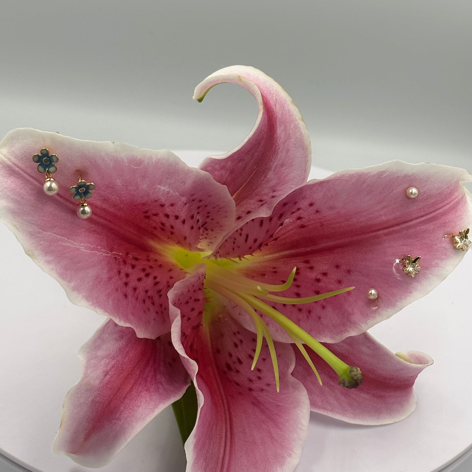 Floral Bunny & Pearl Stud Earring Set